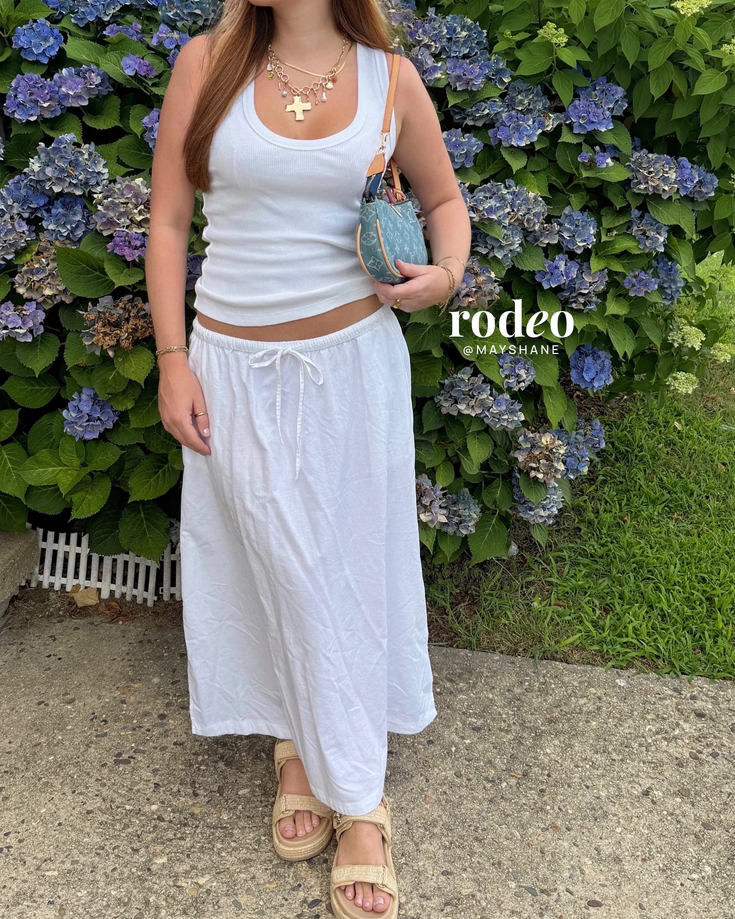 A white tank and drawstring skirt combo that just begs for a beach day + iced matcha run.