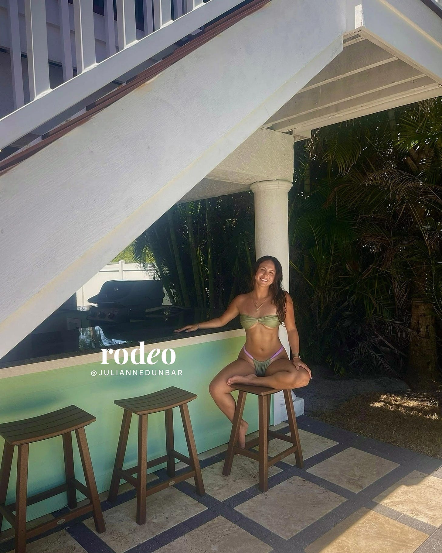 Nothing screams summer like a minty green bikini and bar stools at golden hour.